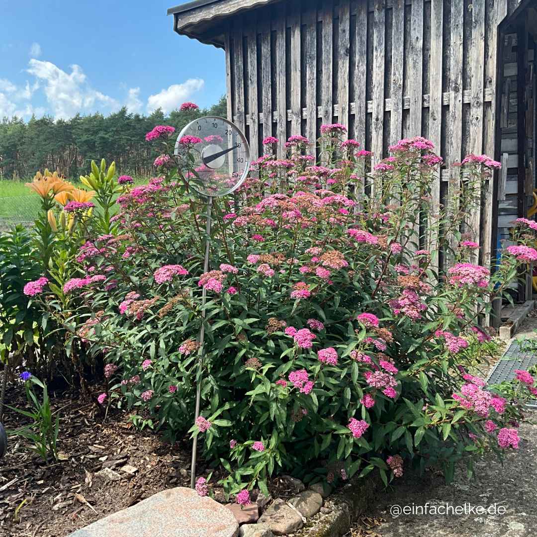 Dieser blühende Strauch ist explodiert. Ich hatte den Strauch im Herbst, nachdem er komplett abgeblüht war und nur noch braune Stengel da waren, zurückgeschnitten, ziemlich tief sogar und was ist passiert. Ich bin echt Stolz auf den Busch. So riesig ist er geworden.